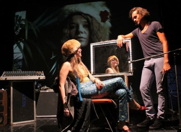 Sulla scena un’attrice e un attore evocano il mondo di Joplin attraverso articoli, pagine intime di diario, lettere e ovviamente musica.